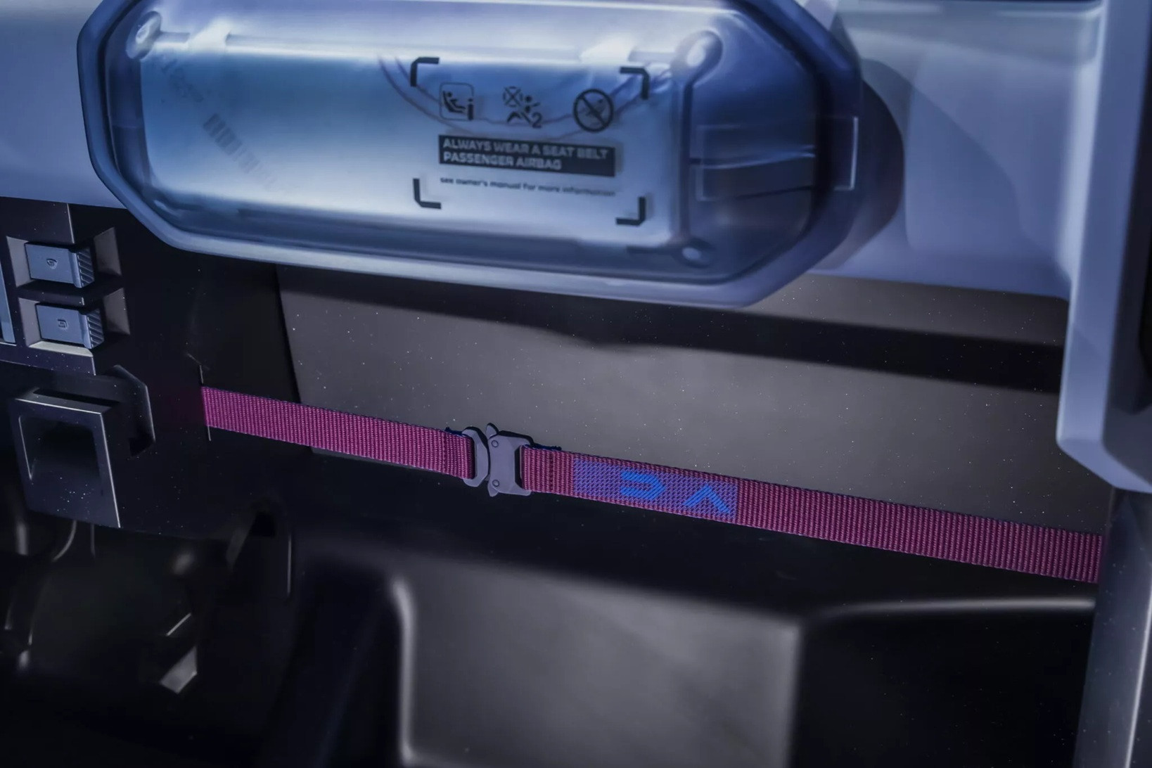 Khoang nội thất ứng dụng hệ thống phụ kiện “You Clip” đặc trưng của Dacia, với 11 điểm gắn linh hoạt cho giá cốc, tay vịn, đèn, đồ chơi,… Người lái có thể dùng điện thoại thông minh làm chìa khóa kỹ thuật số, bản đồ định vị hoặc như một màn hình giải trí và kết nối với loa Bluetooth di động. Xe chỉ trang bị bảng đồng hồ kỹ thuật số và hai túi khí an toàn.
